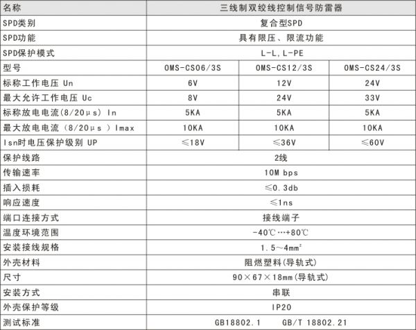 三線制雙絞線信號(hào)防雷器,控制信號(hào)防雷器,RS485防雷器,OMS-CS06/3S,OMS-CS12/3S,OMS-CS24/3S-