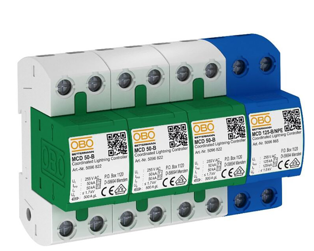 新的MCD 50-B和MCD 125-B/NPE防雷器首選的應用環(huán)境是需要有緊湊的防雷保護概念或者需要在一個獨立的小型房內(nèi)安裝B和C兩極防雷