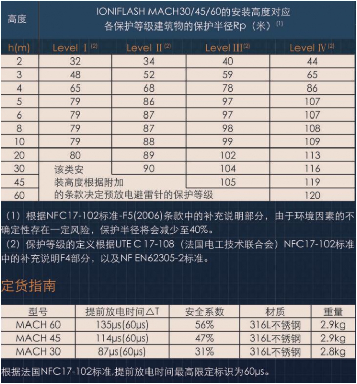 法蘭西提前放電避雷針保護半徑