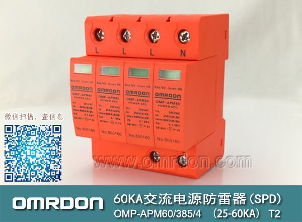 60KA二級電涌保護(hù)器SPD(又稱電源防雷器、電源避雷器、浪涌保護(hù)器、過壓保護(hù)器) OMP-APM60-